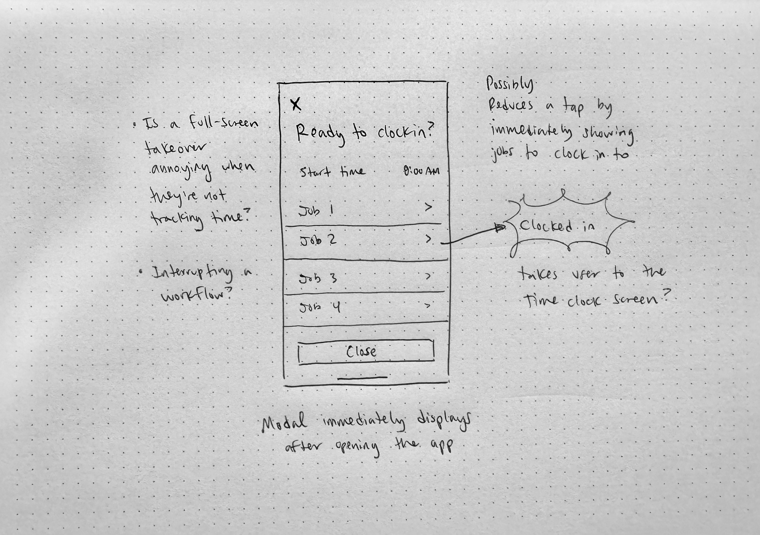 Displaying a modal on app open for quick clock-in access
