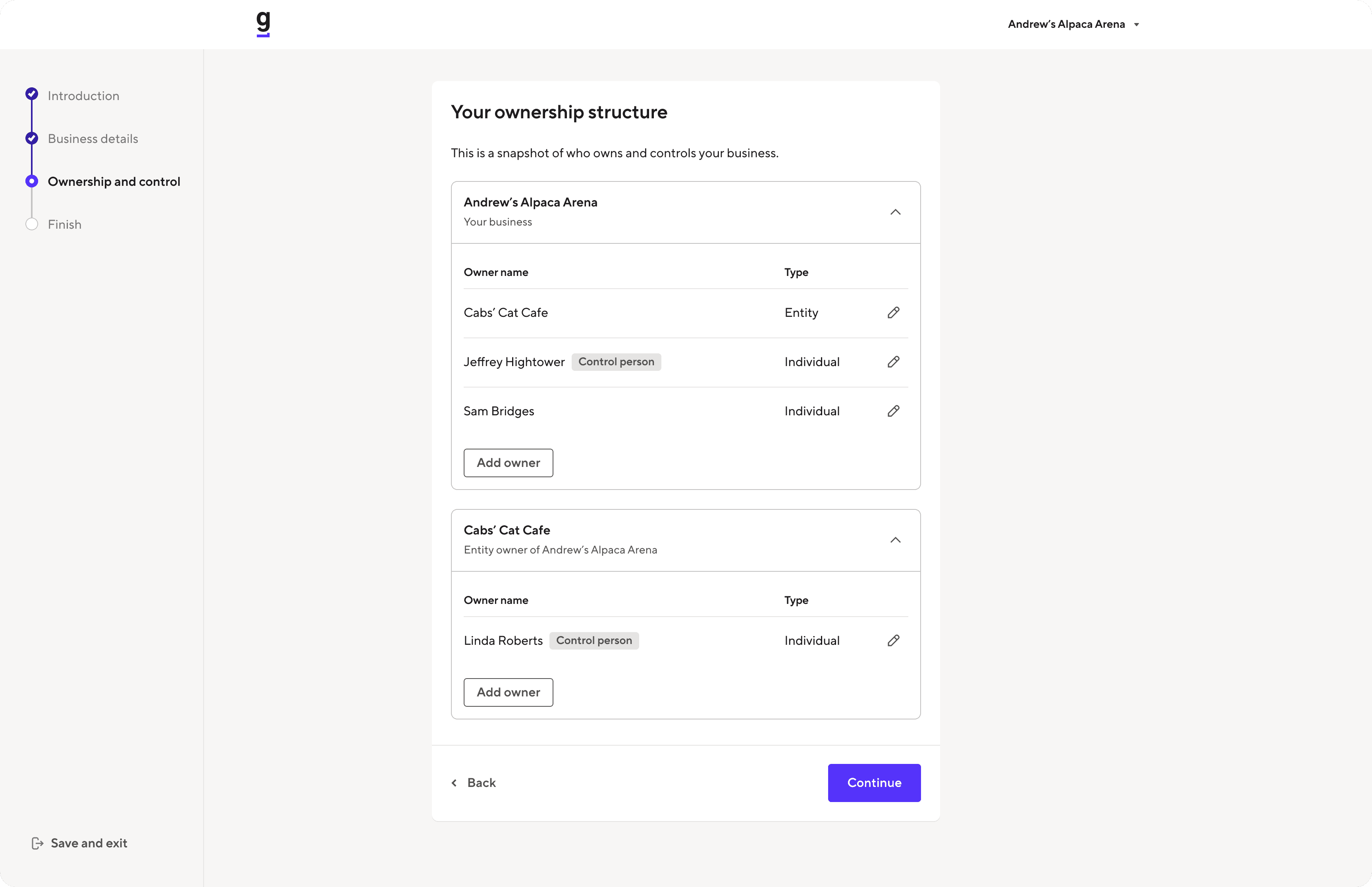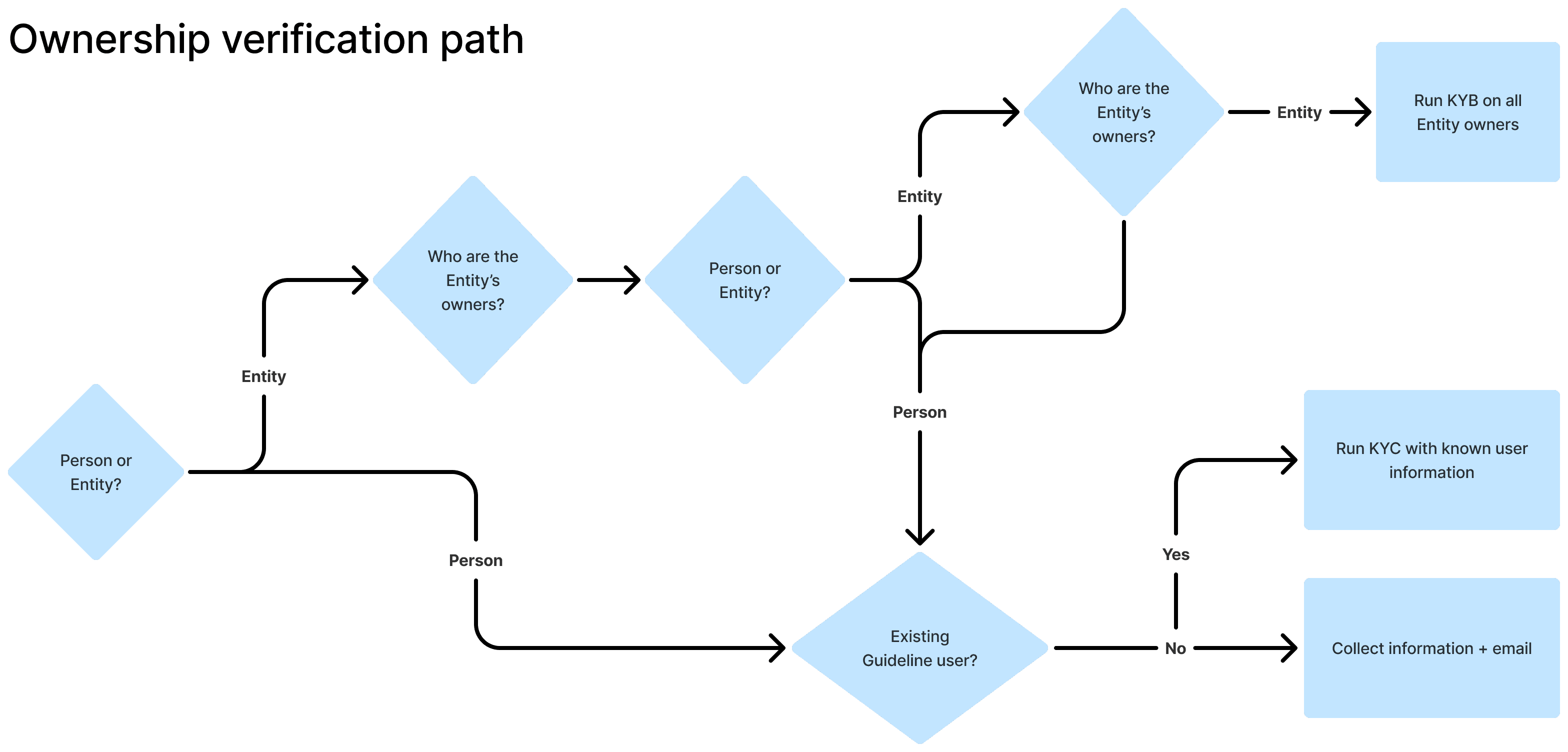 Through that discovery process, an important structural insight emerged: while regulations support deeply nested ownership hierarchies, the majority of U.S. small businesses (over 80%) are directly owned by individuals. Designing primarily for the complex edge case would have imposed unnecessary cognitive load on most customers.